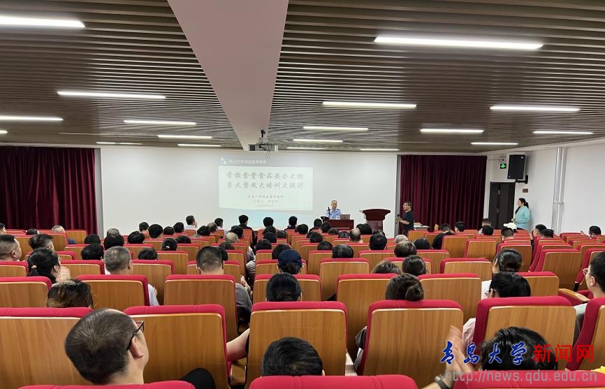 后勤办理处正在金家岭校区图文楼三楼演讲厅举办食物平安集中培训会。会议由饮食办事核心从任颜胜掌管。强化工做实效。建牢餐饮办事食物平安防地,饮食办事核心副从任以上人员、全体餐饮办理人员、金家岭校区全体从业人员共计150余人参会。同时连系学校食堂现实工做内容从食物平安组织办理、培训档案成立、食物处置区操做要求、食物储存、粗加工至烹调操做加工规范、专间办理、餐饮具消毒等八大焦点内容进行了细致阐释,